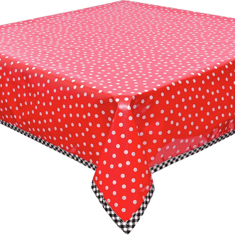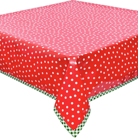 Dot White on Red Oilcloth Tablecloths