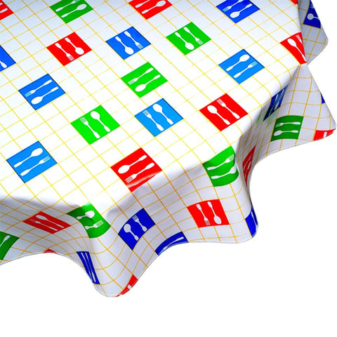 Round Forks and Spoons Yellow Oilcloth Tablecloths