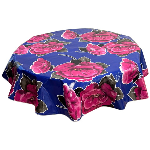 Round Gardenia Navy Blue Oilcloth Tablecloths