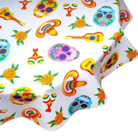 round skulls white oilcloth tablecloth