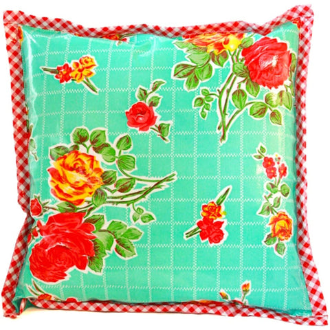 These handmade oilcloth pillows are perfect for getting comfy with! Measuring 16x16 these are perfect for any chair, couch or bench. Created with coordinating gingham trim!