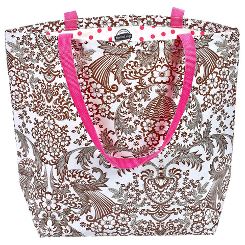 These re-useable, durable, and easy to clean market bags will replace any need for a throw away bag at the grocery store. Spills clean right up, so you can use these over and over again. Two large interior pockets to hold your keys, wallet, cell phone. Great for the beach, sand rolls right out. Perfect as an overnight bag. Anything you need to bring with you, our market bag can handle!