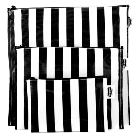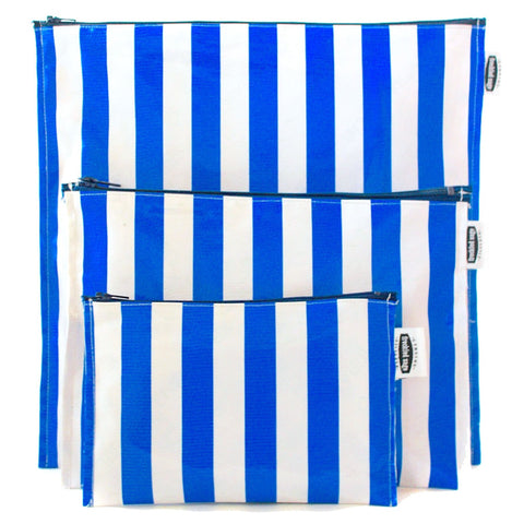 A set of three sizes to accommodate all of your needs! At the beach, store your flip flops, wet bathing suit, sunscreen, sunglasses. Fits easily in suitcases and carry-ons. Great for storing pens, pencils, erasers, papers, and art supplies too!